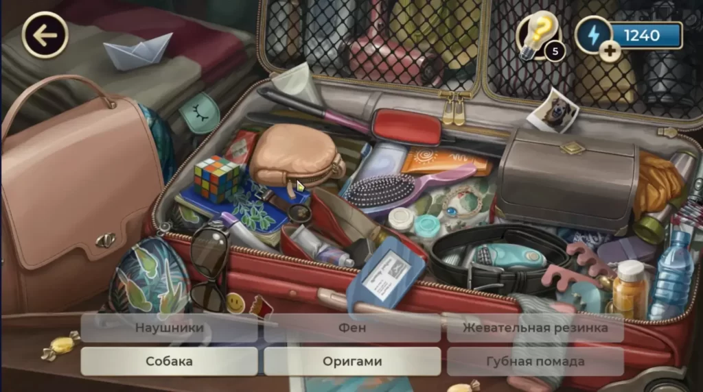 Головоломки начинаются уже в самолете. Марго, владелица журнала попросит жевательную резинку. Для этого необходимо отыскать сумочку в багажном отделении и навести в ней порядок. Найдите перечисленные предметы: