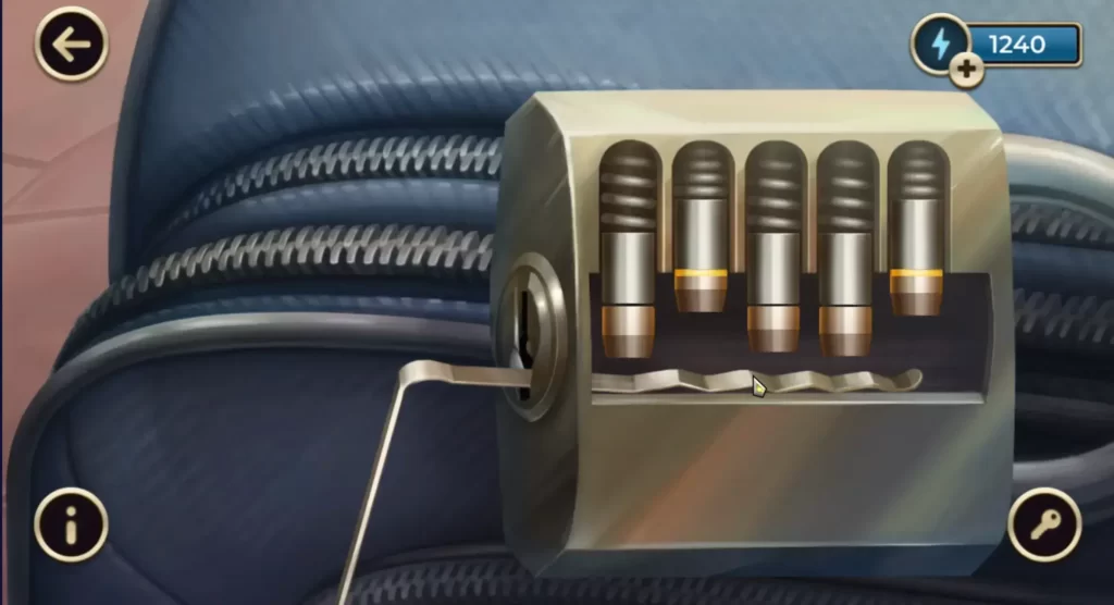 Следующим заданием по сюжету станет помощь доктору Катарина Беннет, с ее замком на чемодане. Простыми движениями взломайте замок, как показано на видео ниже: