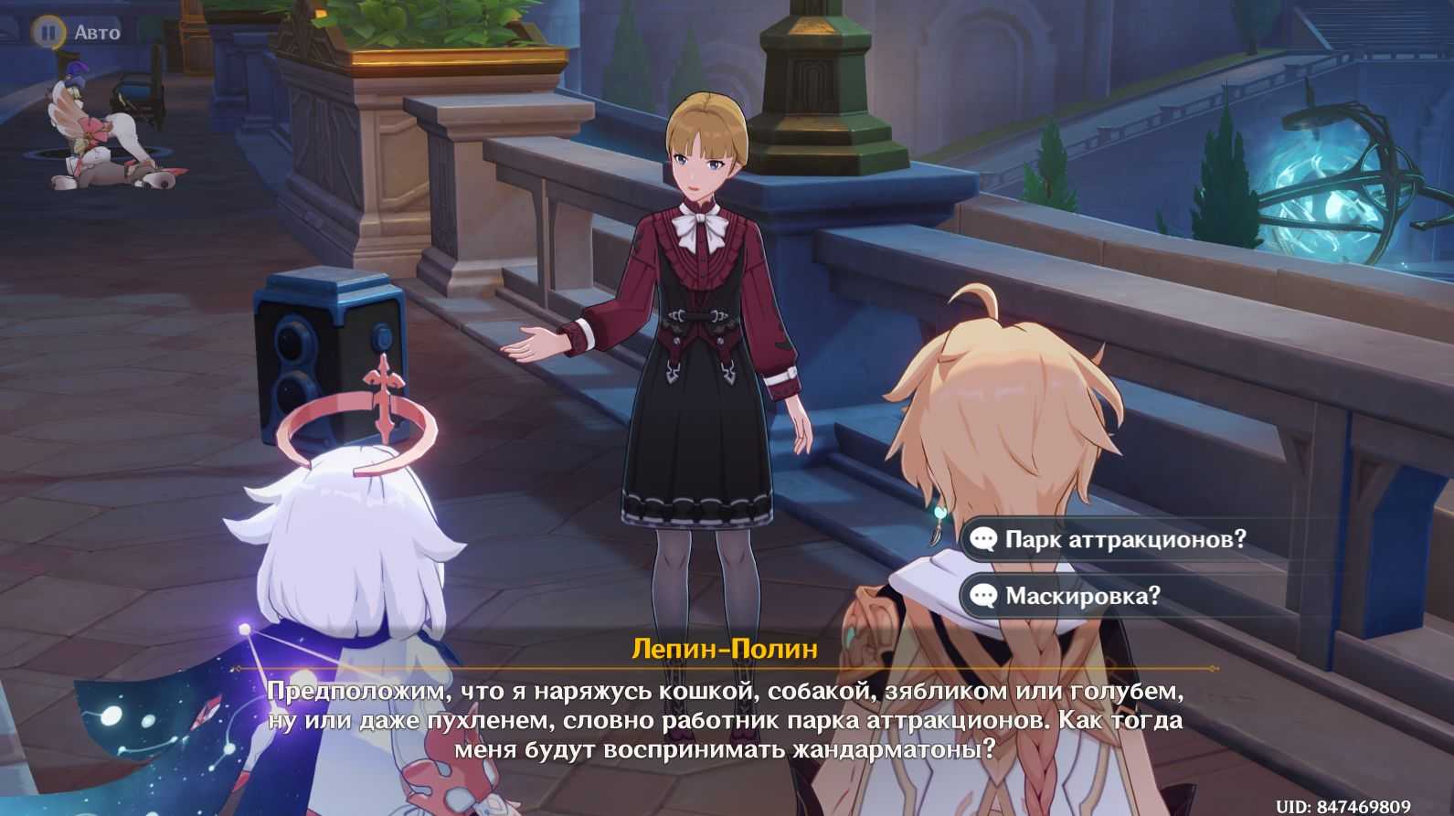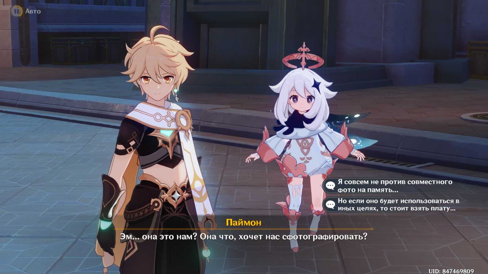 Ивент начинается с предложения Паймон прогуляться по Фонтейну. Идя по улицам города, вы становитесь объектом внимания дамы с камерой. Она хочет сделать ваши снимки и готова хорошо за это заплатить.