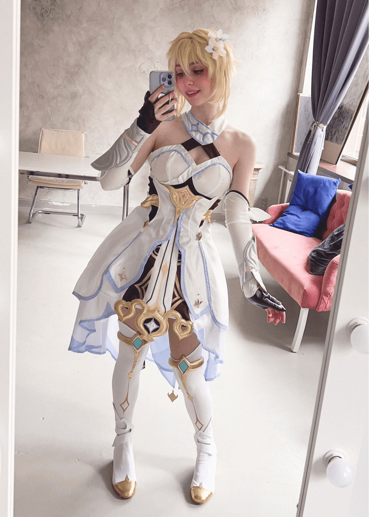- For her weapon, replicating any in-game polearm would suffice