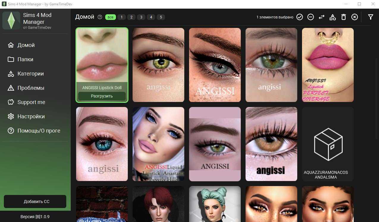 Теперь вы можете добавлять моды в созданную категорию. Для этого вам нужно кликнуть правой кнопкой мыши по моду и нажать на кнопку с геометрическими фигурами, которая расположена внизу: