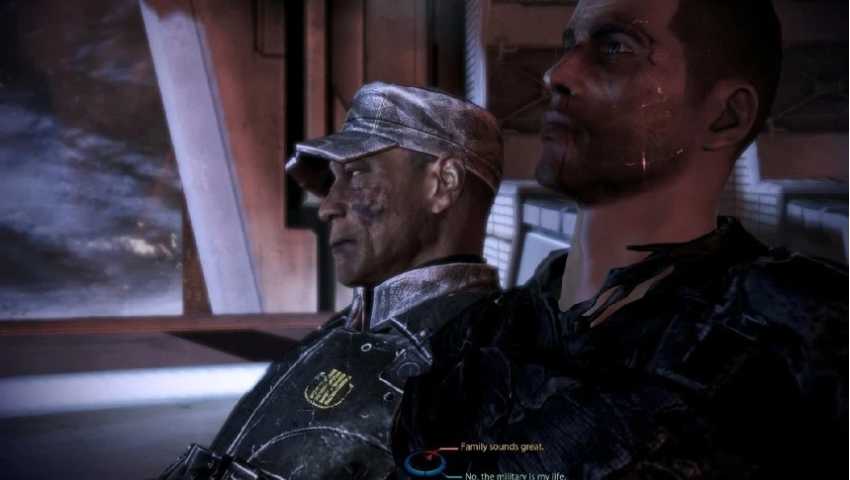 The Normandy also doesn’t randomly crash land, and instead, there is a lovely scene with Shep memorializing David Anderson.