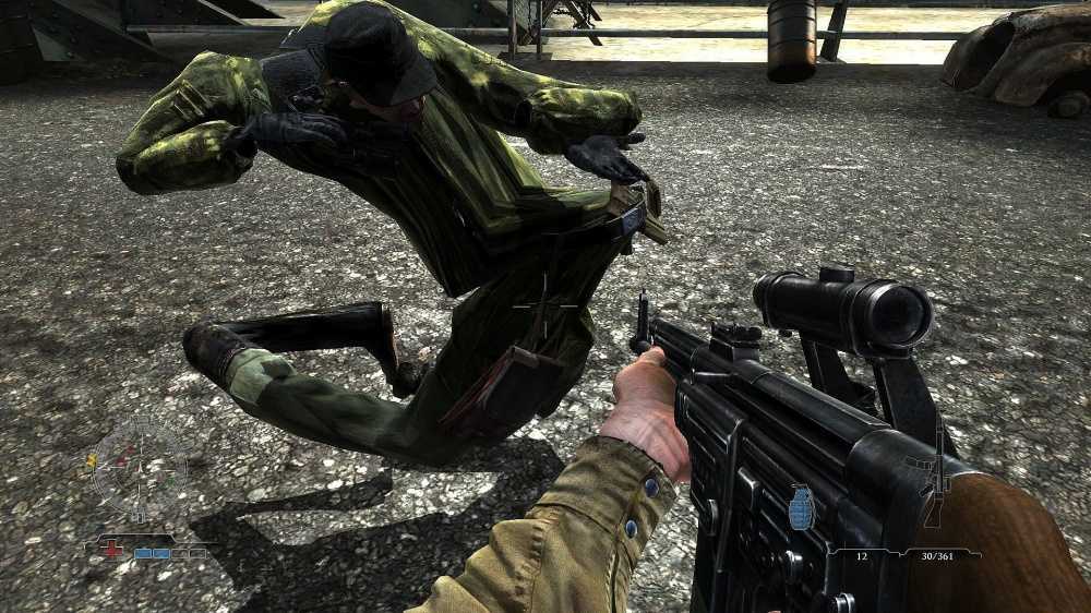 The game features a variety of weapons, including rifles, pistols, and grenades. The player can also use vehicles, such as tanks and jeeps, to complete objectives. The game also has a multiplayer mode that allows players to compete against each other in a variety of game modes, such as deathmatch and capture the flag.