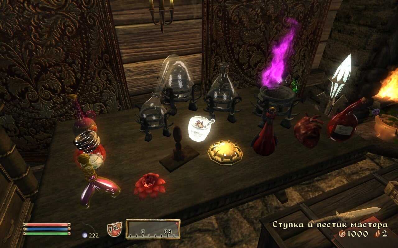Система крафта в «Морровинде» и «Обливионе» скорее на любителя. Не все хотят для изготовления каждого зелья и яда доставать на верстак реторты, перегонные кубы и ступы. Но как же круто чувствовать себя настоящим алхимиком! Да, рано или поздно повторение превращается в рутину, но это как в кино – slice of life – «кусочек жизни» твоего персонажа. Такая система крафта дает иммерсивность – ощущение погружения.