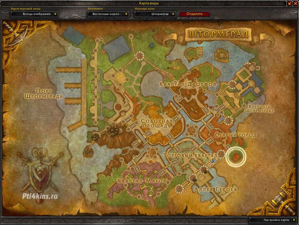 Торговец, обменивающий очки расположен в Штормграде в Старом городе. На карте обведена в кружочки таверна, в которой он расположен: