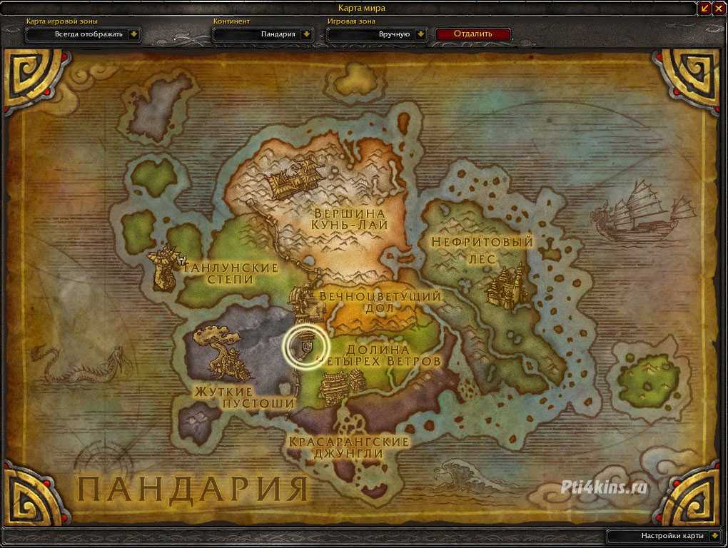 Итак, у Вас имеются Очки чести (хонор), которые необходимо потратить. Летим в Пандарию к торговцу на стене, продающему PvP-экипировку. На карте это место отмечено маленьким щитом: