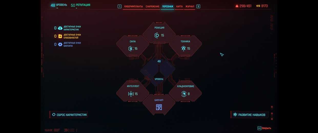 «Реакция» увеличит урон и общую пользу пистолетов-пулемётов, а «Техника» – одна из самых полезных характеристик в игре, поскольку напрямую влияет на импланты, что поможет максимально соответствовать сеттингу игры.