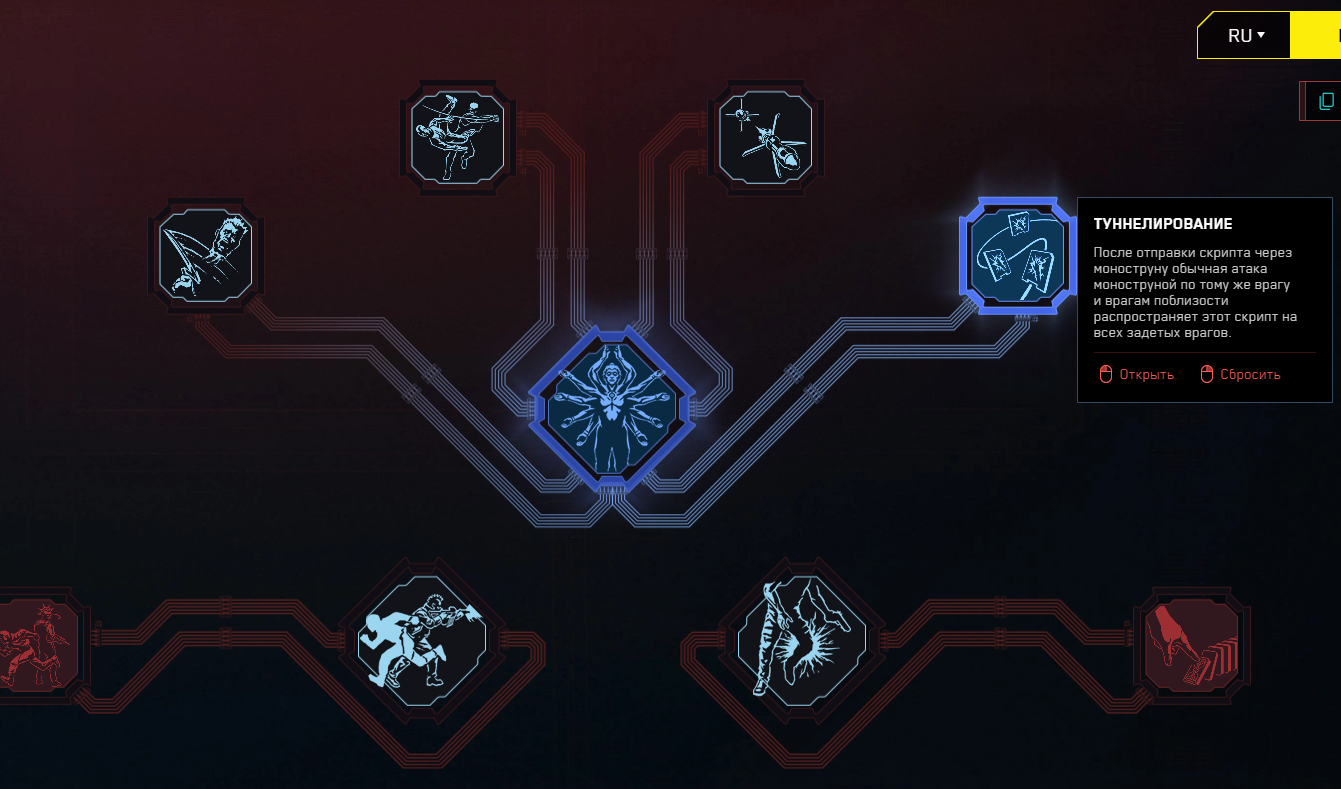 В ветке «Биочип», которая открывается в DLC Phantom Liberty, нет каких-то критически важных для нас способностей – разве что «Туннелирование», которое значительно усиливает персонажа, использующего в качестве основного оружия моноструну.