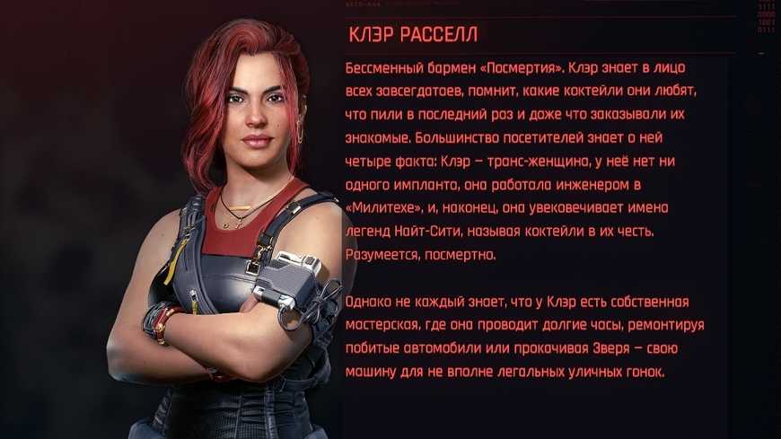 Клэр Рассел (англ. Claire Russell) — бармен в баре “Посмертие”, а также владелица собственной автомастерской. Является трансгендером и противницей установки себе каких-либо имплантов.