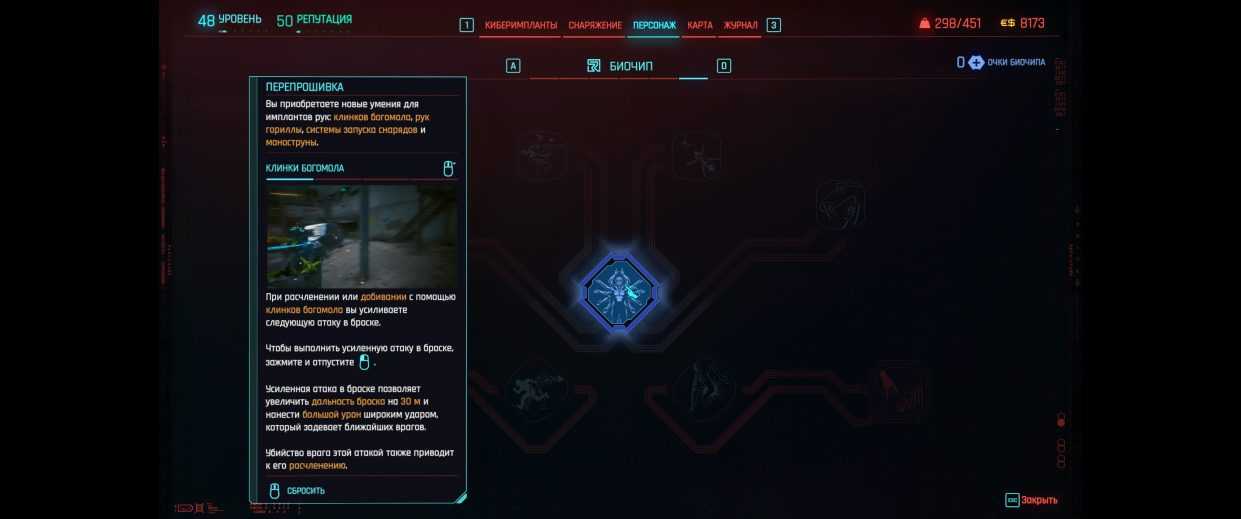 Всего доступно 10 навыков для биочипа, которые вы можете открыть в ходе прохождения. Разбиты они на три основные ветки: маскировка (невидимость), анализ уязвимости и перепрошивка. С первой все понятно, вторая — возможность находить уязвимости в броне противников, а третья — новые умения для имплантов, вроде рук богомола или моноструны.