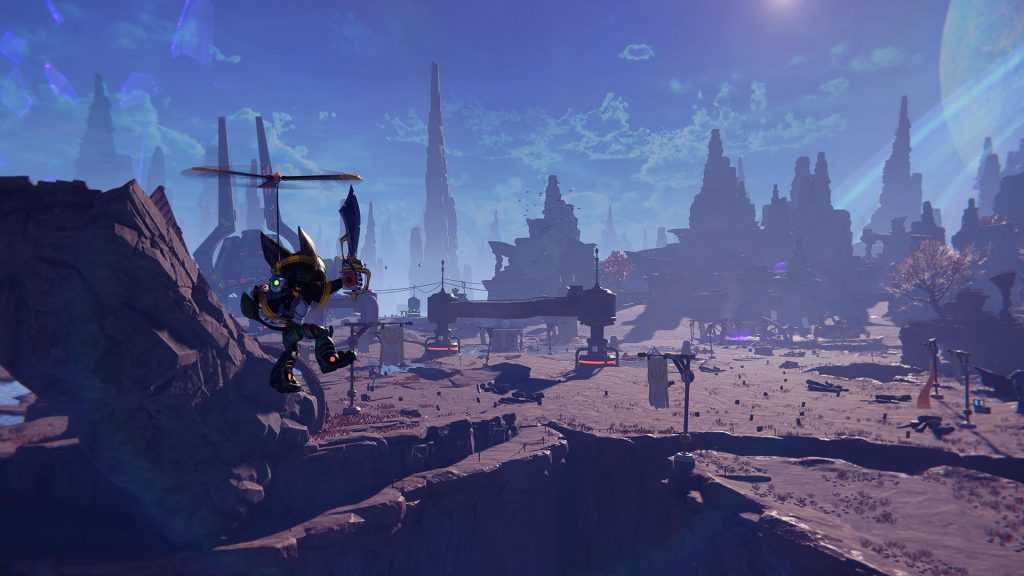 В целом Rift Apart линейна — летаем по планетам-уровням и бежим туда, куда укажет маркер. Но в поисках бонусов и коллекционных предметов можно отклониться от курса или вернуться на уже пройденные уровни. Есть даже пара особенно больших, почти «опенворлдных» локаций, изучать которые можно особенно долго. Занятие достойное, но на нем игра частенько ломается.
