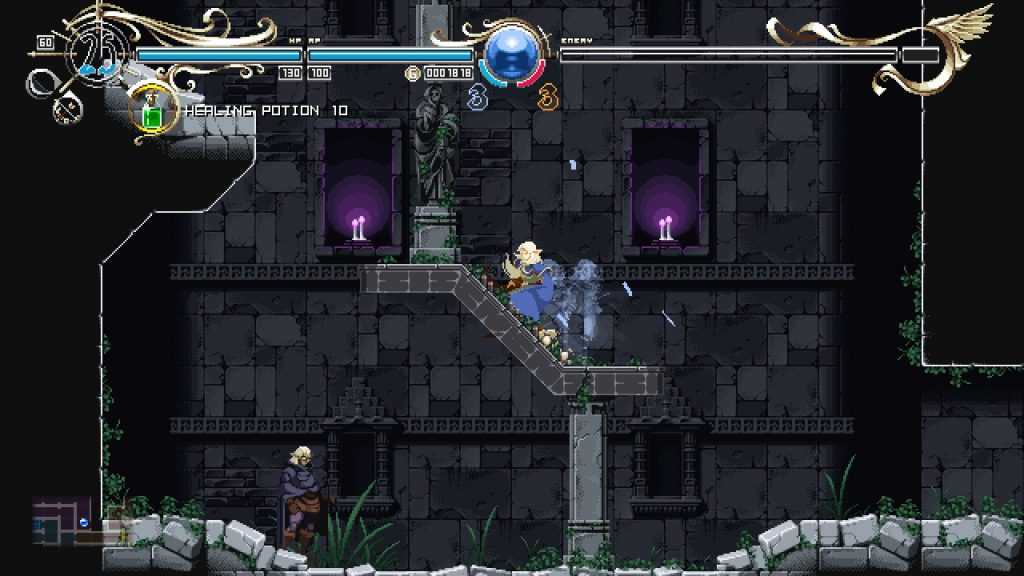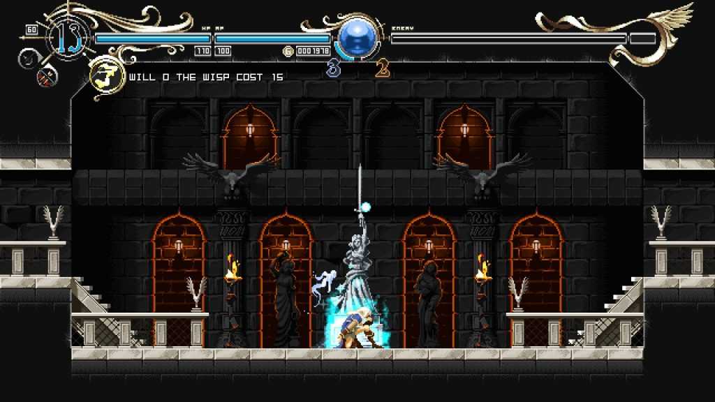 Двойные прыжки и различные атакующие приемы. Новые заклинания. Прокачка уровнями. Всё, как “Castlevania: Symphony of the Night” завещала.