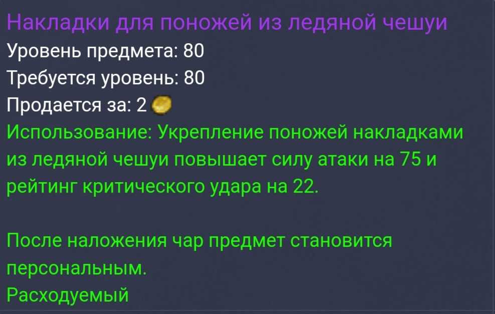 В первую очередь обращайте внимание на уровень самого предмета, напомним максимальный уровень – 284. *Заостренная сумеречная чешуя* падает из подземелья с уровнем 271