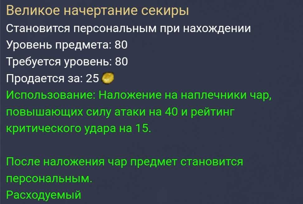 Эту чарку мы будем чарить и на оружие в правой руке, и на оружие в левой руке.