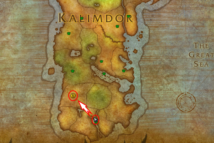After taking that portal you’ll find yourself in Uldum, and with a somewhat short flight you can make your way right to Silithus. I’ll include a map showing where you spawn in at Uldum and where you’re supposed to be going to find Magni: