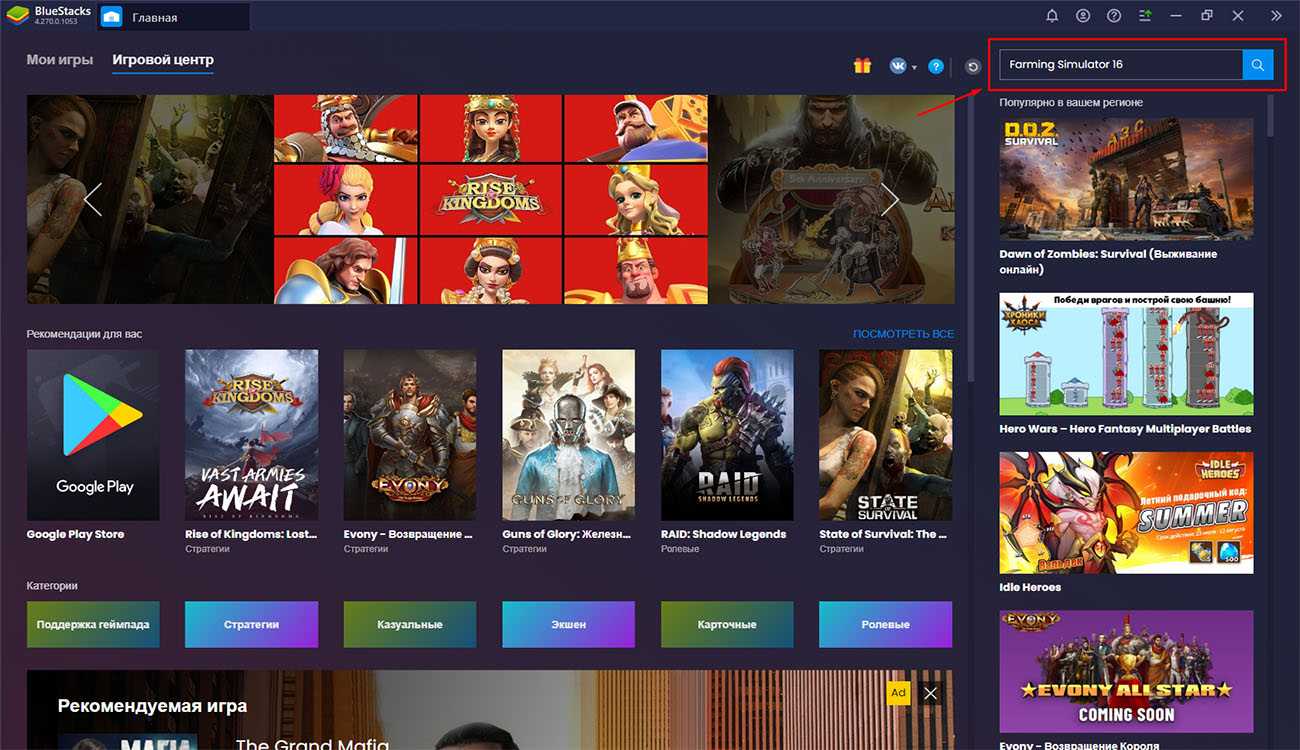 В поле поиска, которое находится в правой части экрана, введите название игры – Farming Simulator 16.