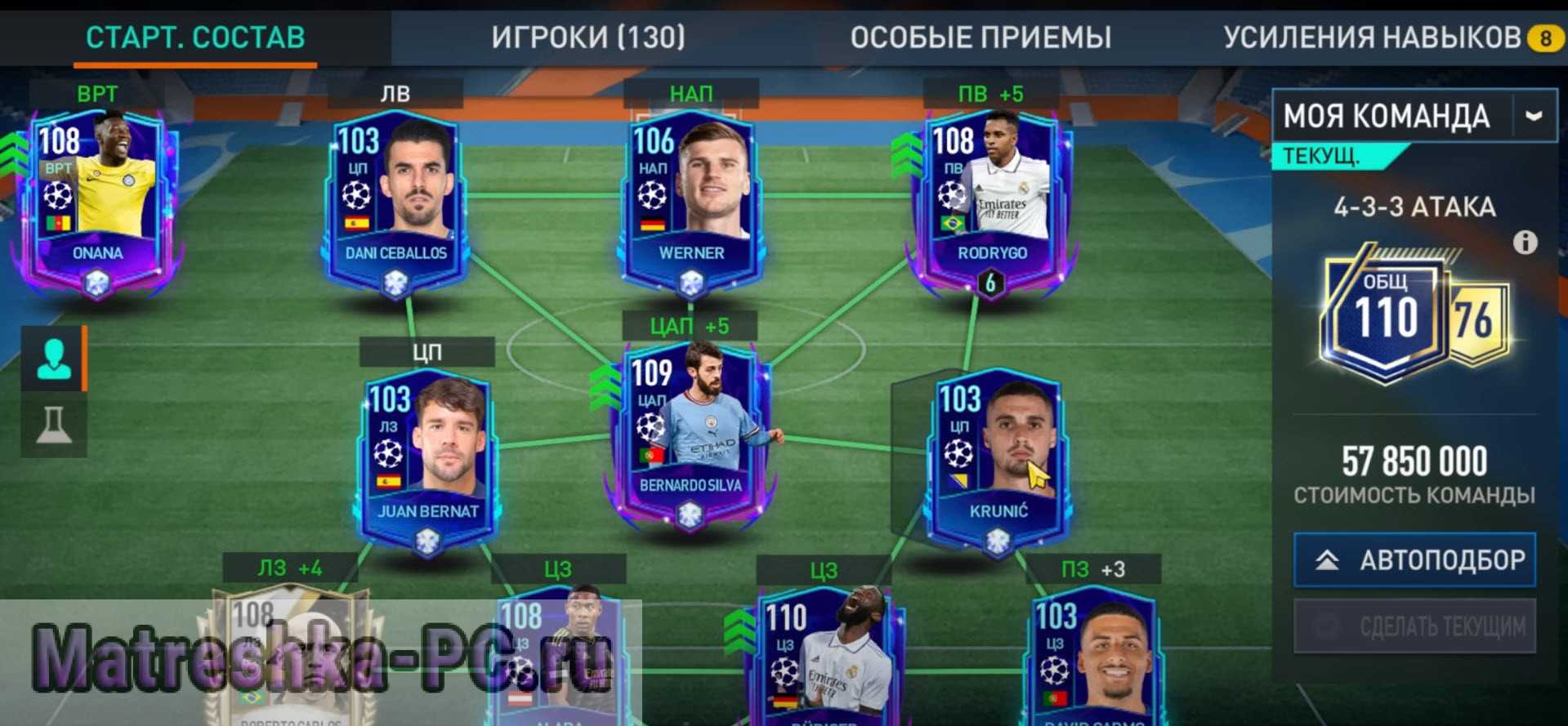 FIFA Mobile 21 на компьютере сильно меняет привычное положение дел благодаря тому, что самое главное – режим онлайн. Комнада мечты (Ultimate team) занимает центральное место в игре. Игроку предстоит собрать идеальный коллектив из самых сильных игроков. На силу футболистов влияет частоту их появления.