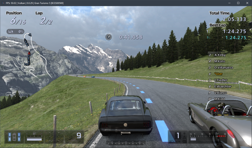 Но Ryzen 5 3600 это уже далеко не самый мощный процессор. При эмуляции Gran Turismo 5 на чипе Core i5-12400F выяснилось, что данный CPU выдает что-то около 24-70 FPS в графически нагруженных треках и более 50-80 на простых картах, что значительно комфортнее, а значит, его можно считать отправной точкой в эмуляции Gran Turismo 5.
