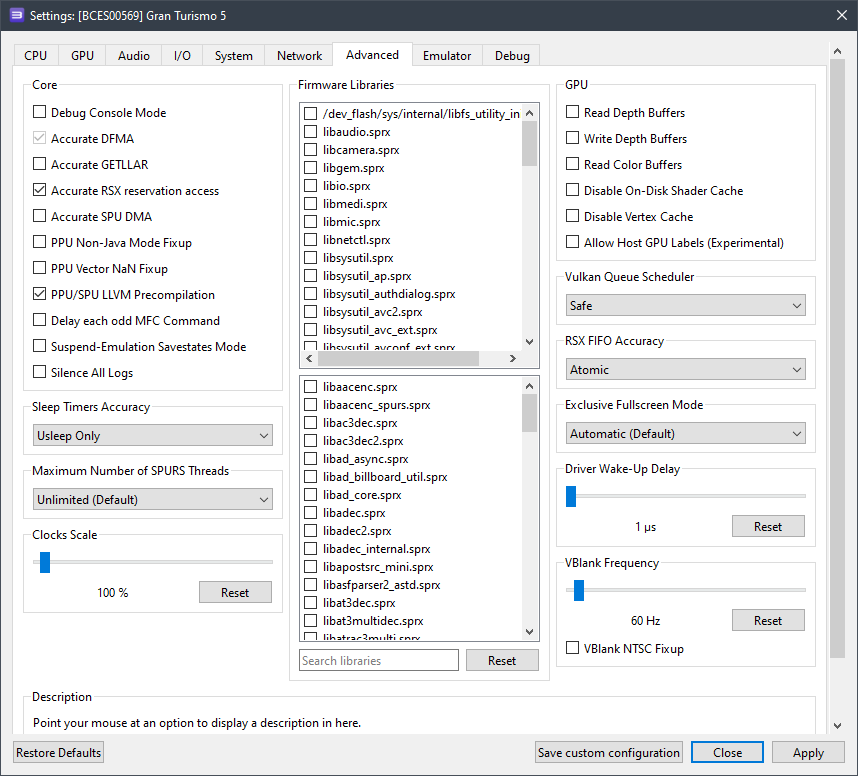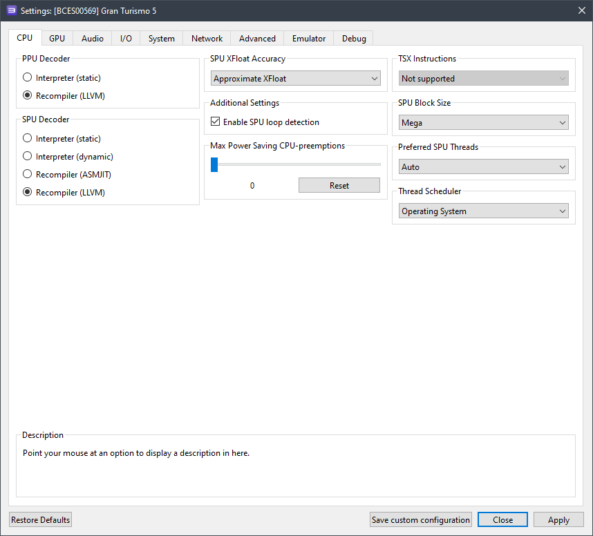 Здесь вы так же можете поиграться с параметром SPU Decoder (если вас не устраивает производительность, или игра иногда вылетает), сменив его на Recompiler (ASMJIT).