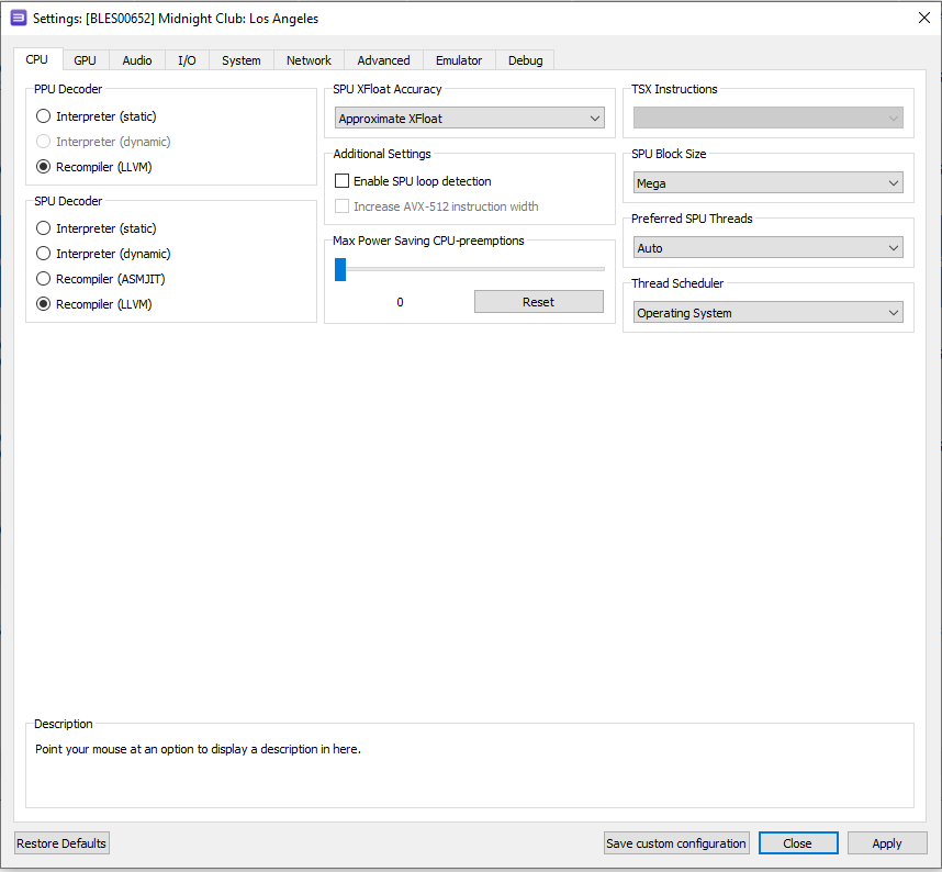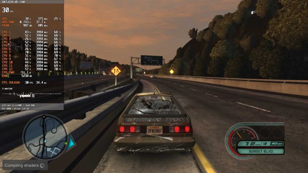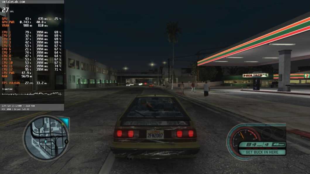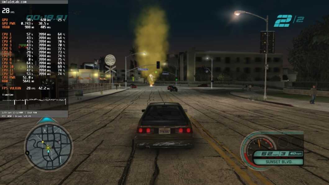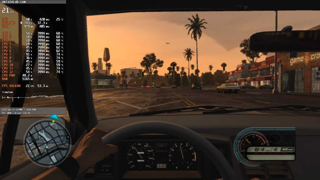 Так же, согласно нашим замерам, более-менее адекватно Midnight Club: Los Angeles эмулируется начиная с 6-ядерных чипов поколения AMD Zen 3 / Intel Rocket Lake и видеокарт AMD Radeon RX 400 / NVIDIA GeForce GTX 1000. В остальном, существенных проблем с производительностью избежать будет сложно.