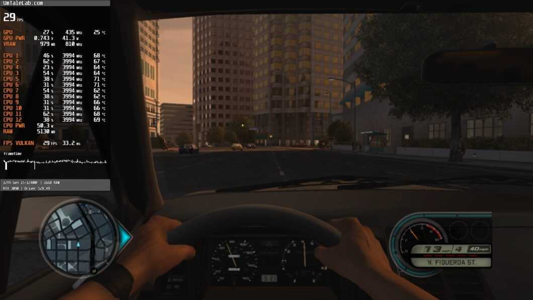 Теперь давайте перейдем к полученным результатам. Настроив RPCS3 таким образом, мы смогли добиться относительно приемлемого FPS в районе 19-30 на процессоре Intel Core i5-12400F. Безусловно, на чипах слабее стендового, падение частоты кадров будут существеннее, тем не менее, на оригинальной консоли PS3 игра работала не лучше.