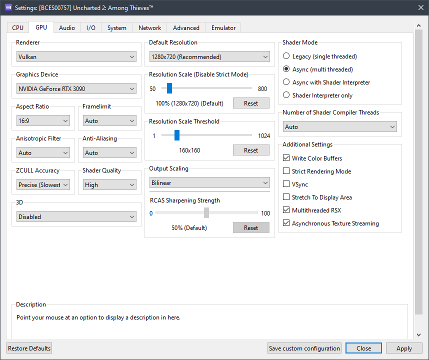 Теперь пару слов о необходимом железе на текущей версии эмулятора RPCS3 v0.0.29+. Согласно нашим замерам, более-менее адекватно Uncharted 2: Among Thieves эмулируется начиная с 6-ядерных чипов поколения AMD Zen 2-3 / Intel Skylake/Rocket Lake и видеокарт AMD Radeon RX 400 / NVIDIA GeForce GTX 1000, а для комфортного прохождения в стабильных 30 кадрах вам потребуется высокочастотный 6-ядерный (лучше 8-ядерный) чип Alder Lake (Core 12-13) или Zen 4 (Ryzen 7000). В остальном, существенных проблем с производительностью избежать будет крайне сложно.
