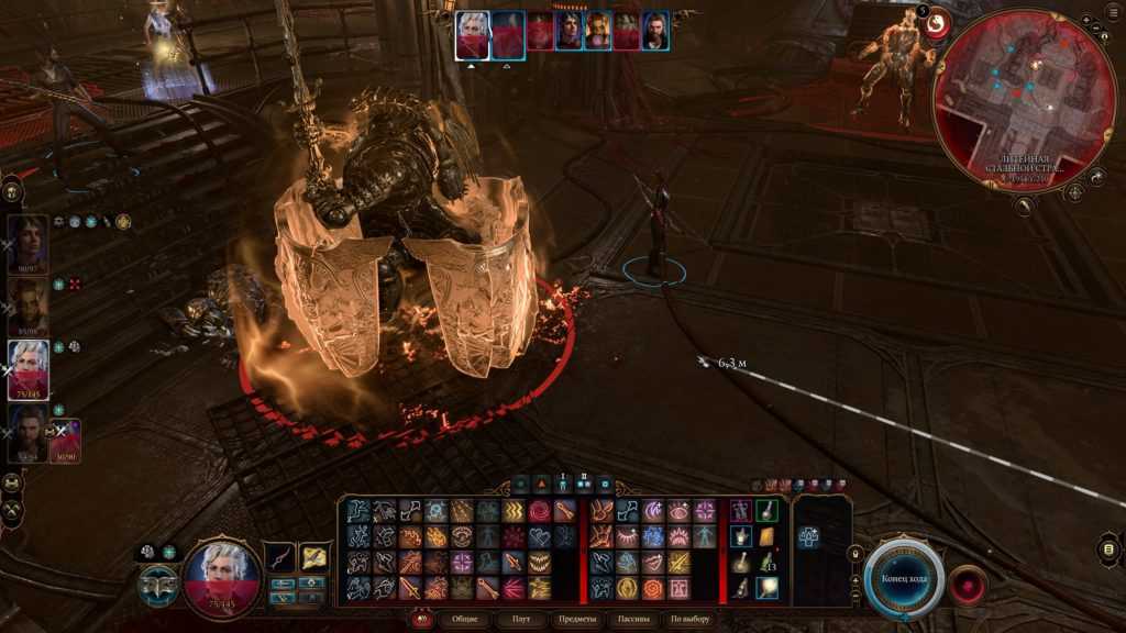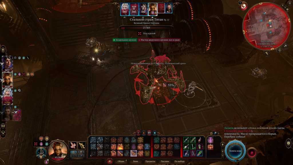 - Страж включает протокол защиты: оплот и поднимает щиты вокруг себя. На полу появятся круги, которые показывают, куда Титан запустит свои ракеты. Если бы вы взяли Заннера Тубина с собой, то перед боем он подсказал бы вам, что, пока Титан в этом состоянии, надо «палить по нему из всех орудий». Под этим понимается задача сбить дополнительные ОЗ, которые у него появились, чтобы сбросить этот бафф, при котором Титан восстанавливает ОЗ в начале хода и запускает ракеты. Осложняется задание тем, что в состоянии оплота босс пропускает урон по себе не меньше 15 за удар. Придется использовать заклинания из высокоуровневых ячеек. Хорошим подспорьем для нас стал Гейл с его Искусством войны. Где найти книгу для изучения этого скилла, описывается здесь. Лаэзель и Астарион на 12 уровне также достаточно бьют с руки.