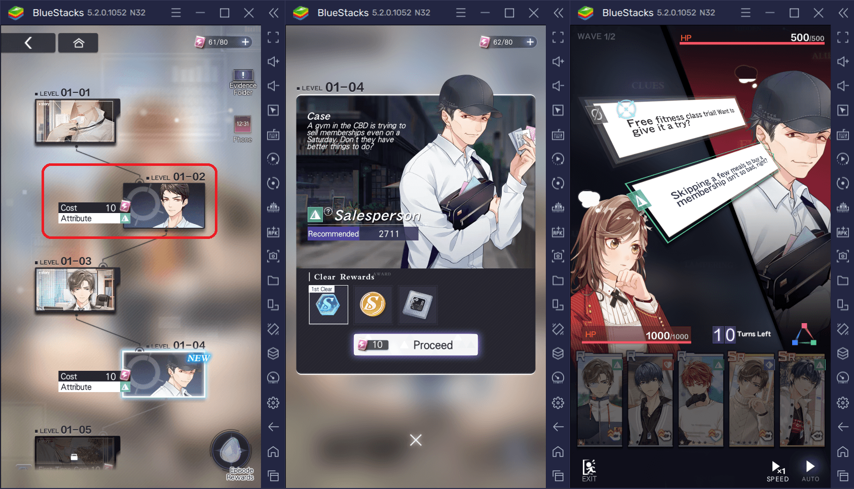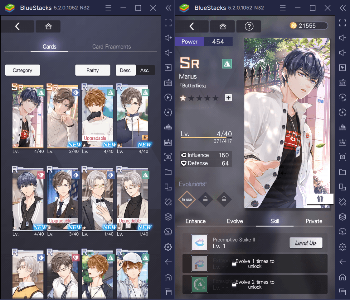 Если вас не интересуют усовершенствованные варианты или разблокированные истории, вам все равно необходимо повысить уровень своих карт, чтобы увеличить свою боевую мощь. Бои в Tears of Themis проходят в форме дебатов, в которых вам понадобится объединенная Сила парней в вашей колоде, чтобы убедить кого-то подчиниться.