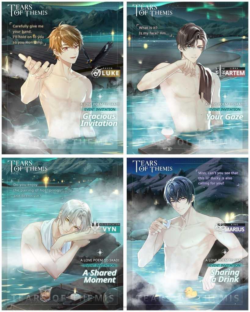 Игроки, которые не забудут регулярно заходить в игру во время действия события также получат Tears of Themis – Limited. Кроме того, временное повышение рейтинга коснется следующих SSR карт: Люк «Twinkling Eyes», Артем «Wandering Heart», Вин «Blazing Colors» и Мариус «Daytime Aurora».