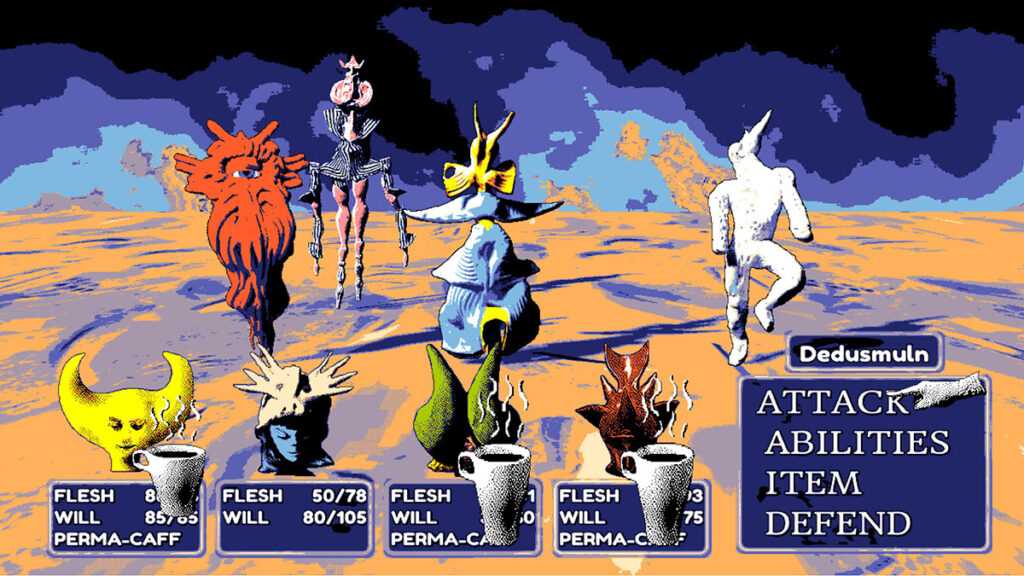 По геймплею Hylics классическая JRPG — японская ролевая игра. Однако совсем не такая, как серия Final Fantasy или Pokemon: вместо опыта в бою герои получают мясо, которое надо перемолоть в фарш, ведь есть сырое мясо не очень полезно для здоровья. Если в обычных JRPG смерть всего отряда — это game over, который приводит к загрузке последнего сохранения, в Hylics это естественный способ прокачки своих героев. Туше, Ницше! То, что нас убивает, делает нас сильнее.
