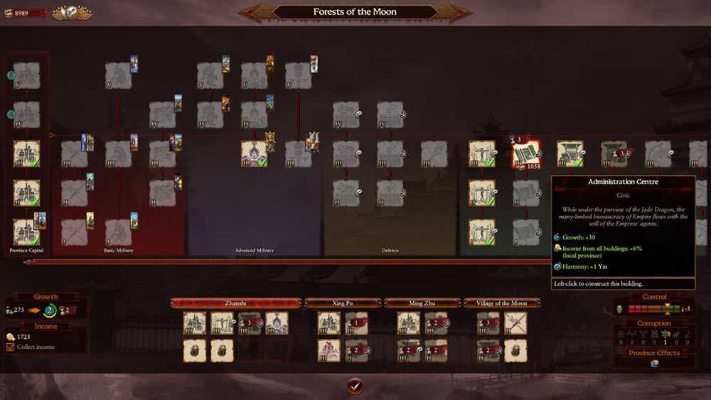 Если Гармония склоняется в сторону другой, здания доминирующей системы выиграют больше, но противоположная сторона понесет наказание. Однако, если у игроков одинаковое количество Инь и Ян, империя выиграет от того, что будет находиться в совершенной Гармонии, и игрок получит оптимальный уровень выгоды для всех аспектов своей империи.