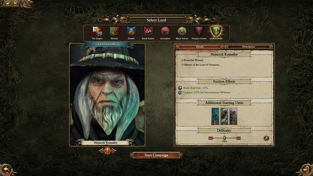 На удивление, совершенно не важно, за какую из фракций вы играете, что совершенно не подвластно каким-либо законам логики. Данный пробел создателя мира Вархаммер можно восполнить при помощи мода Legendary Lord Unique Start Position