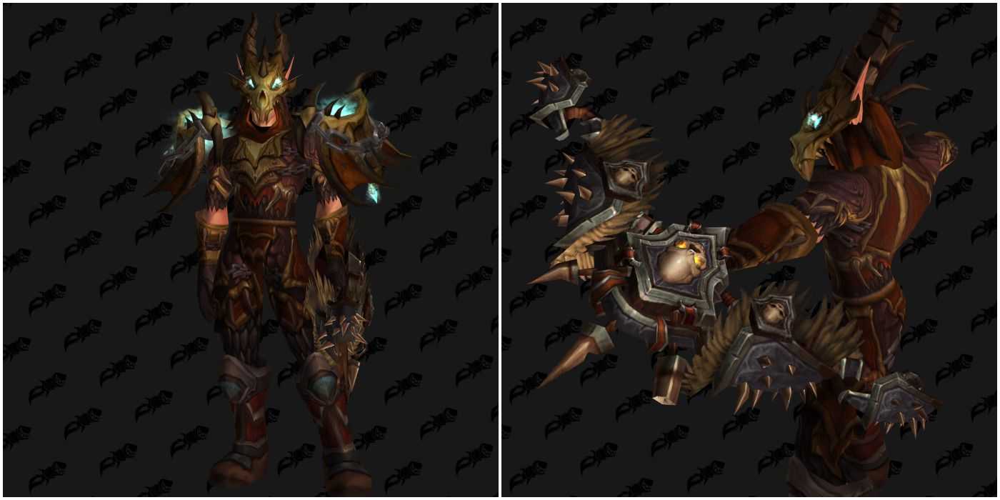 Кровь: Для рыцарей смерти, играющих кровью, рекомендуется использовать трансмогрификацию комплекта «Титан живых мертвецов». Этот сет выглядит могущественным и запугивающим, что отлично сочетается с вашей ролью кровавого рыцаря.