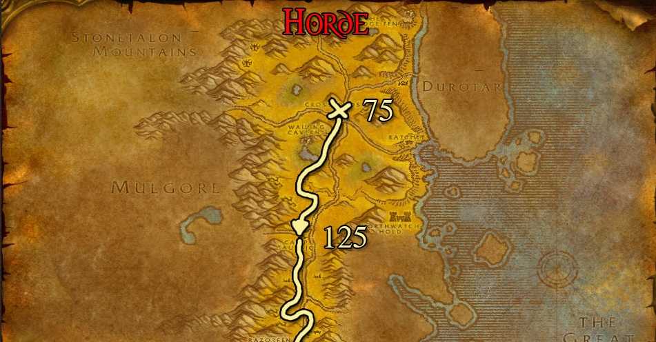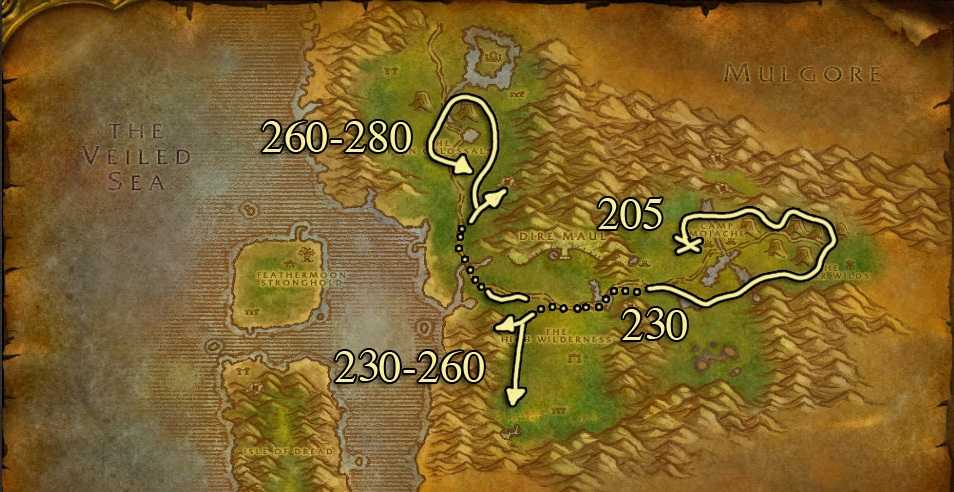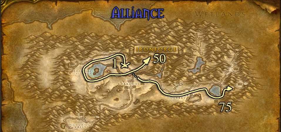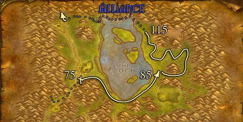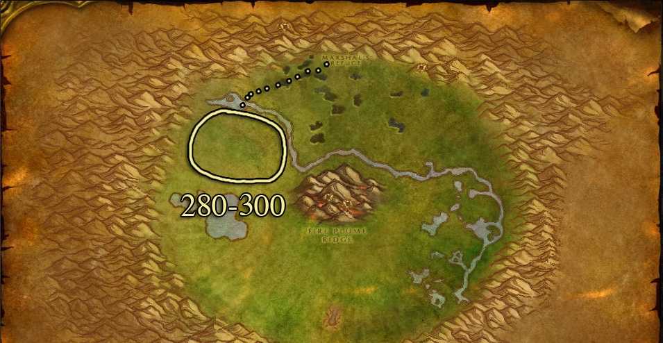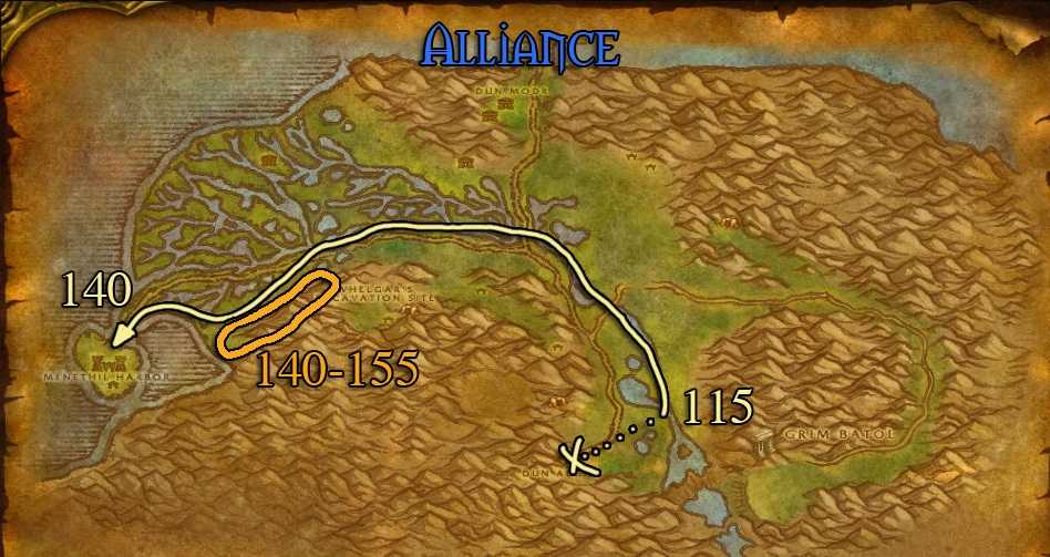 От 115 до 140, следуйте по этой реке, которую вы видите на картинке, и зачистите каждого зверя на своем пути. Вы достигнете около 140 уровня, к тому времени, как доберетесь до гавани. (Вы должны по крайней мере достичь 125) Идите к мастеру полета и летите в Стальгорн. Найдите Балтус шлифовальщик в Стальгорне и изучите – Умелец.