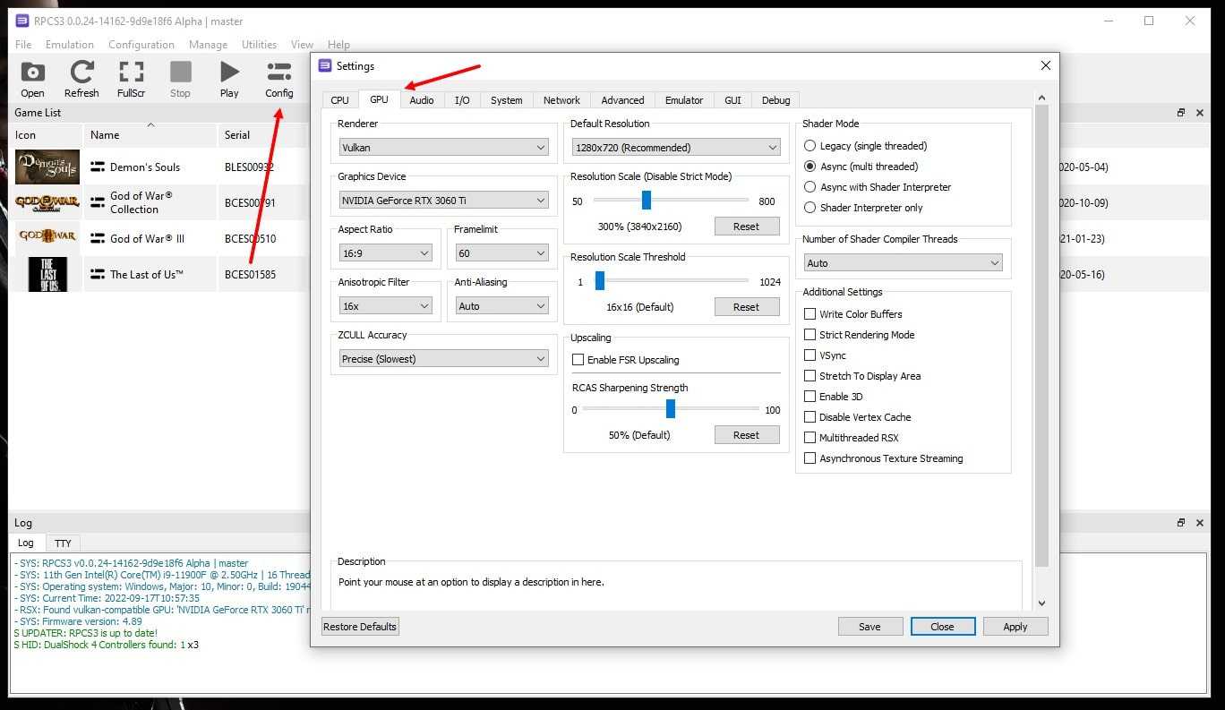 Шаг 3: Отрегулируйте настройки графики и управления в эмуляторе RPCS3