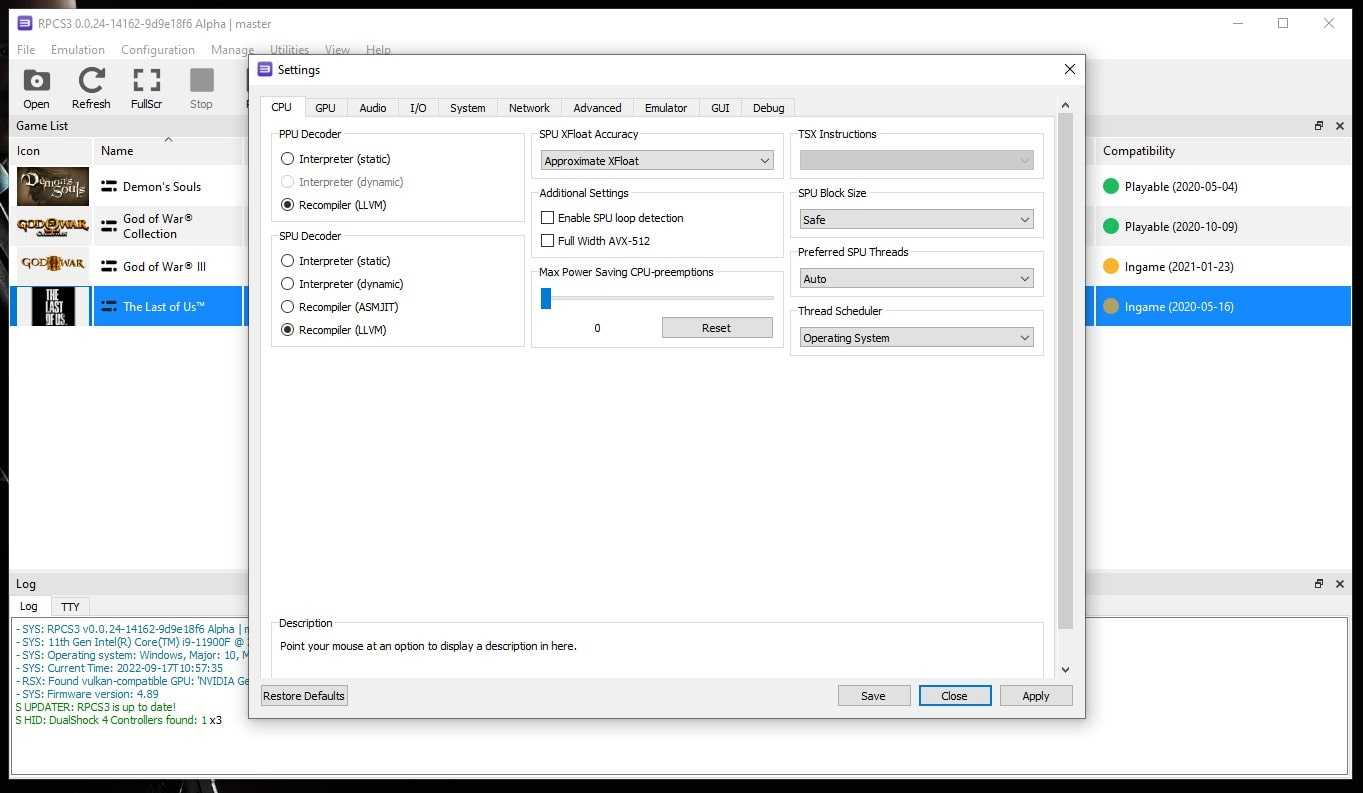Большинство настроек эмулятора RPCS3 следует оставить по умолчанию, если только описание на странице RPCS3 не указывает на то, что для игры требуются специальные настройки. Однако есть две вещи, которые мы должны адаптировать к вашему компьютеру — графические настройки эмулятора, а также конфигурацию элемента управления (pad).