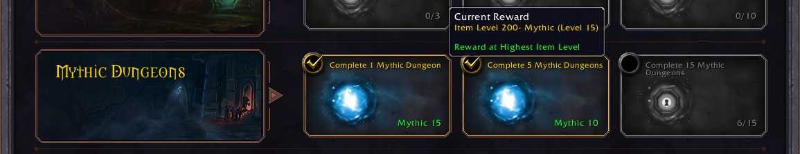 В Mythic + есть три цели Великого Хранилища, связанные с очищением нескольких подземелий каждую неделю.