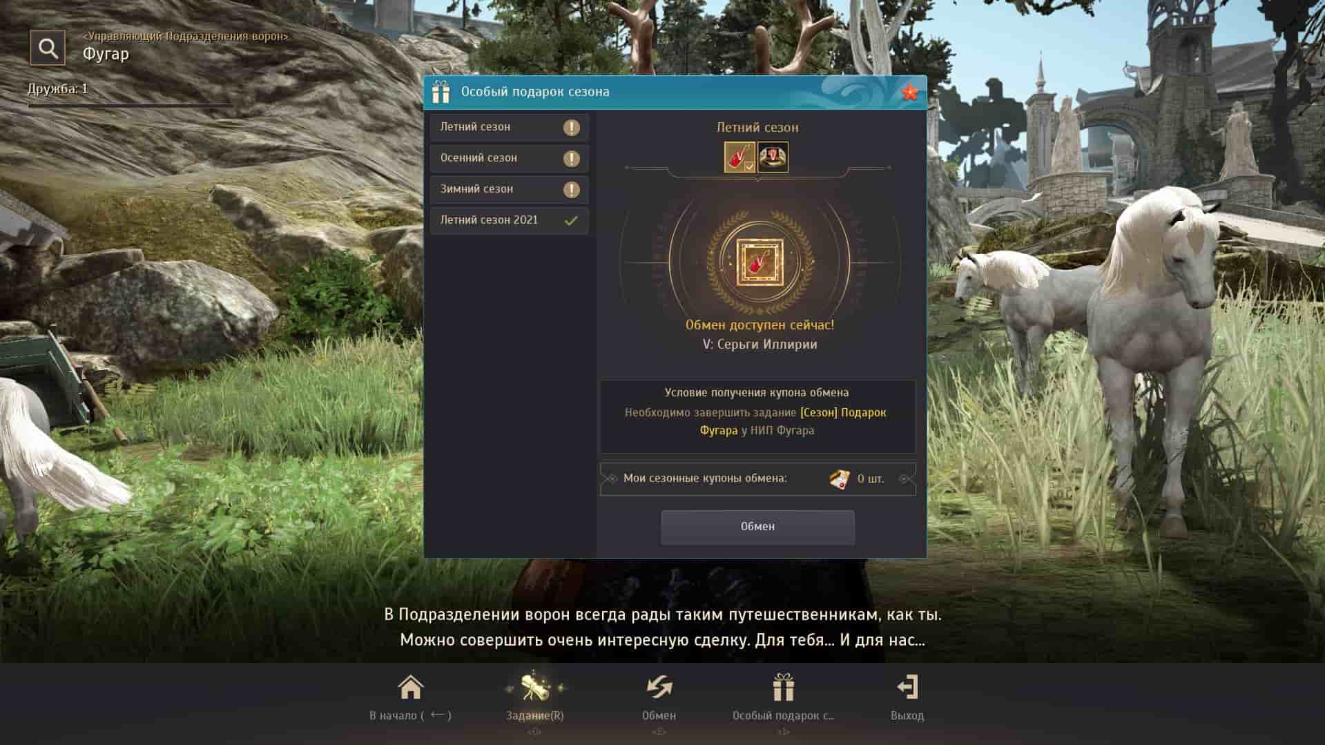 - После того,как вы превратились в обычного персонажа, вам нужно снова вернуться к Фугару и поговорить с ним, чтобы завершить задание. После этого он выдаст вам ваши награды за сезон.