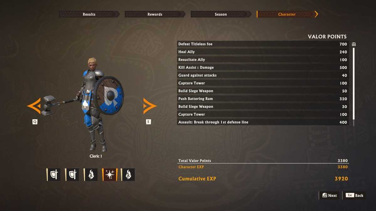 На практике это означает, что более опытные игроки получат своих лучших персонажей быстрее, чем вы, но их убийство также отбросит их назад — по крайней мере, временно. И вы получаете очки доблести за все, от блокировки щитом до воскрешения игроков и постройки осадных орудий.