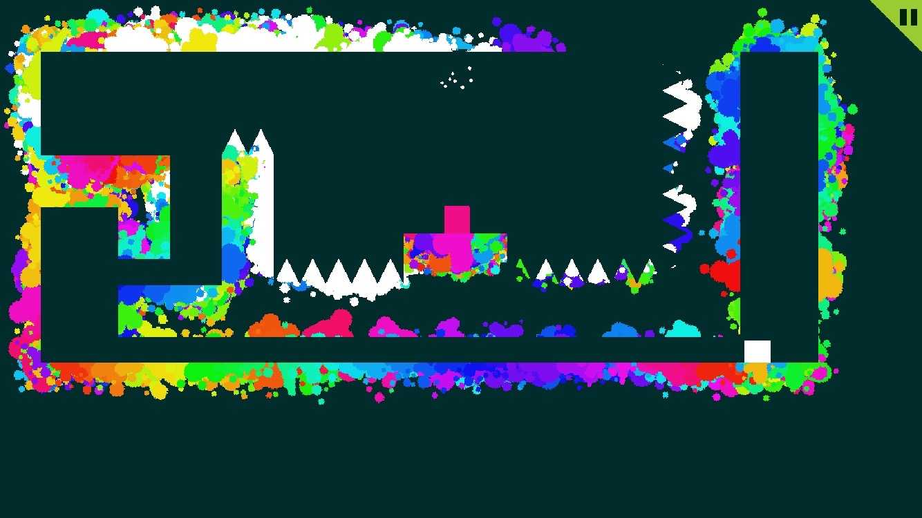 Мир Overpainted – это платформер чистой воды и ровно такой же чистоты уровнями. Черный экран, скромный белый квадрат (наш знакомый герой – маляр) и всё.