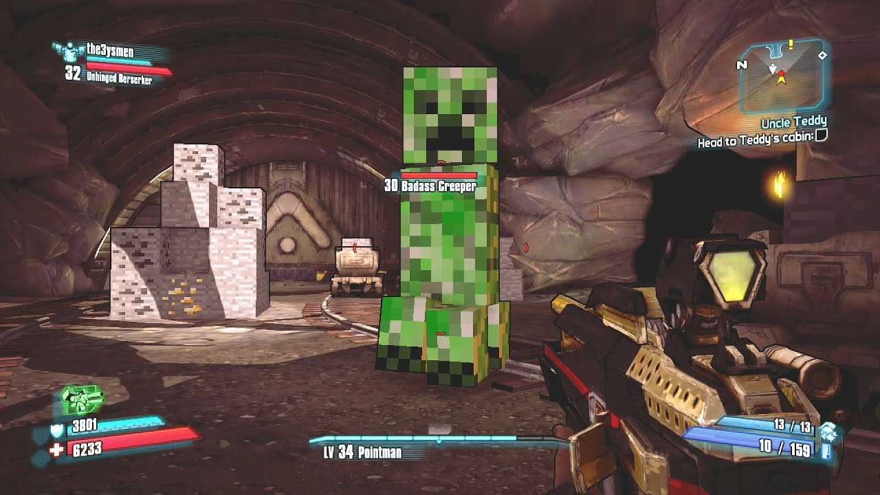 Borderlands 2 — это игра, полная отсылки к другим видеоиграм и поп-культуре в целом. Здесь мы можем найти ссылки на Minecraft, в скрытой пещере в северо-западной части карты внутри Едких пещер. Чтобы войти, нам нужно разбить блок в стиле Майнкрафт, чтобы оказаться внутри. Враги-криперы. В этой видеоигре мы можем найти и другие кроссоверы. как Бэтмен, Дарк Соулс И другие.