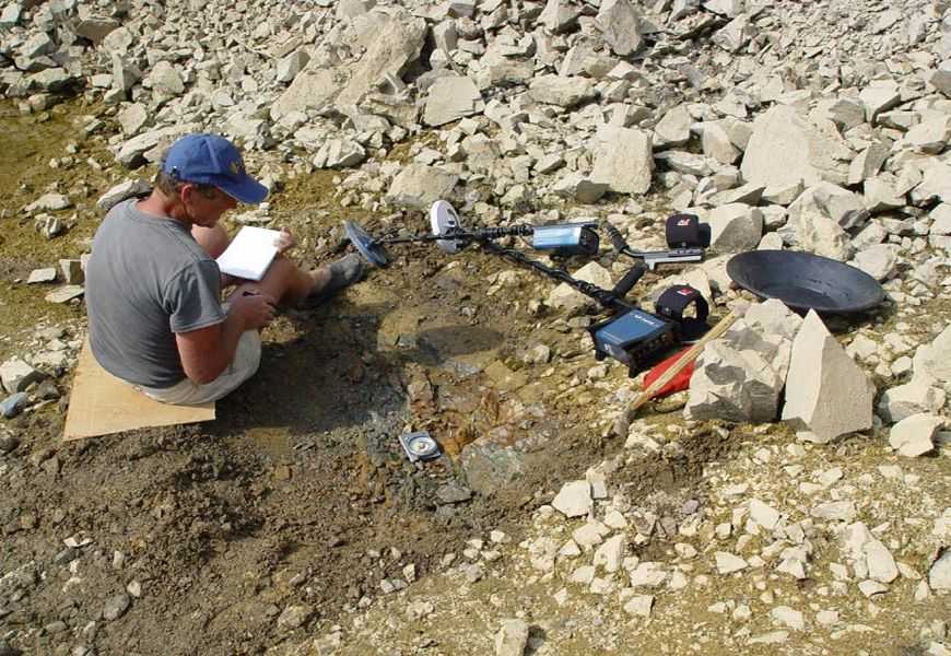 Когда был определен фронт работ, найден участок, где по ряду показателей должны быть самородки или хотя бы вкрапления (частицы, кристаллы, золотая пыль), начинают оценку параметров грунта. Проводят геологический анализ: