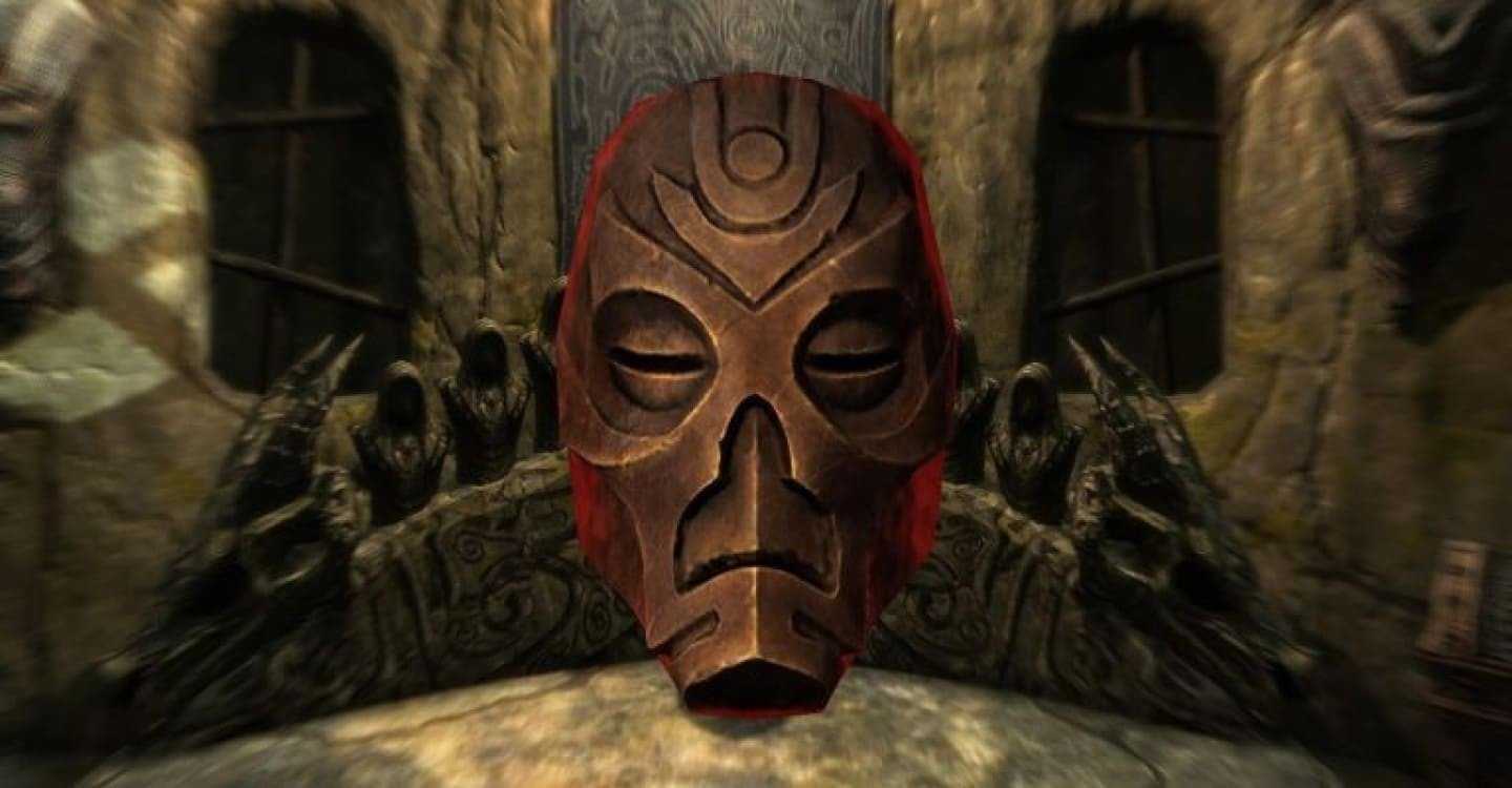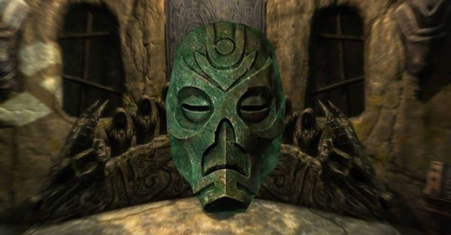 Путь к маске проходит в формате квеста «Охота на культ драконов». С обладателем маски вы встретитесь в трапезной. Помимо жреца, вас встретят полчища драугров. У них еще и уровень высокий, поэтому перед походом на маску рекомендуем улучшить доспехи и оружие.