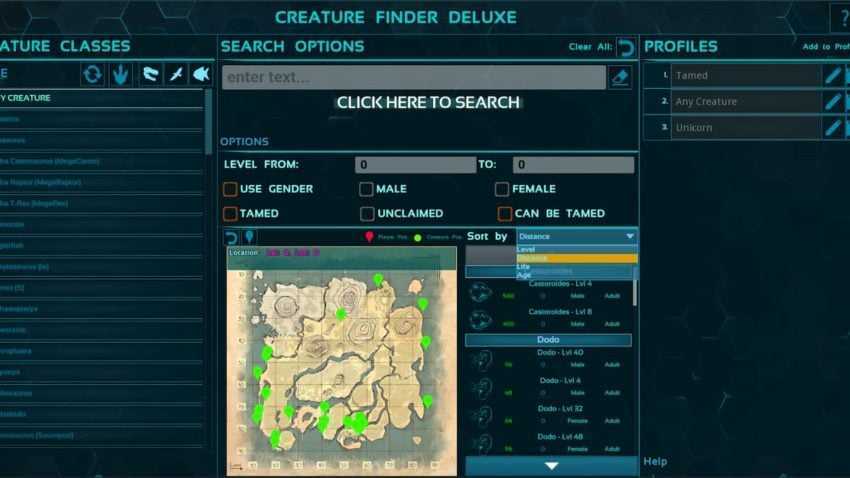 В Ark: Survival Evolved нет ничего более разочаровывающего, чем бесконечные поиски динозавра, который, как вы знаете, где-то поблизости, но не знаете, где именно. Creature Finder Deluxe — один из тех модов, который, к счастью, позволяет игрокам обойти общее разочарование в процессе поиска и вместо этого получить систему навигации, похожую на GPS, чтобы найти то, что они ищут. Creature Finder Deluxe, способный включать существ из модов, является идеальным инструментом ленивого человека для тех, кто ненавидит вычислять координаты в игре.