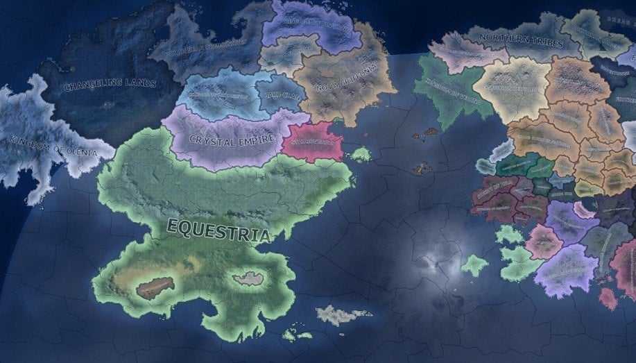 Эквестрия в войне — полноценный мод для Hearts of Iron 4 со всеми характерными чертами. Кастомная карта с множеством каноничных для MLP регионов, 80 фокусных деревьев, древо технологии, куча ивентов и других фишек. Так что рисуем на лице маску клоуна, запускаем мод и ввязываемся в войну Чейнджлингов и Эквестрии.