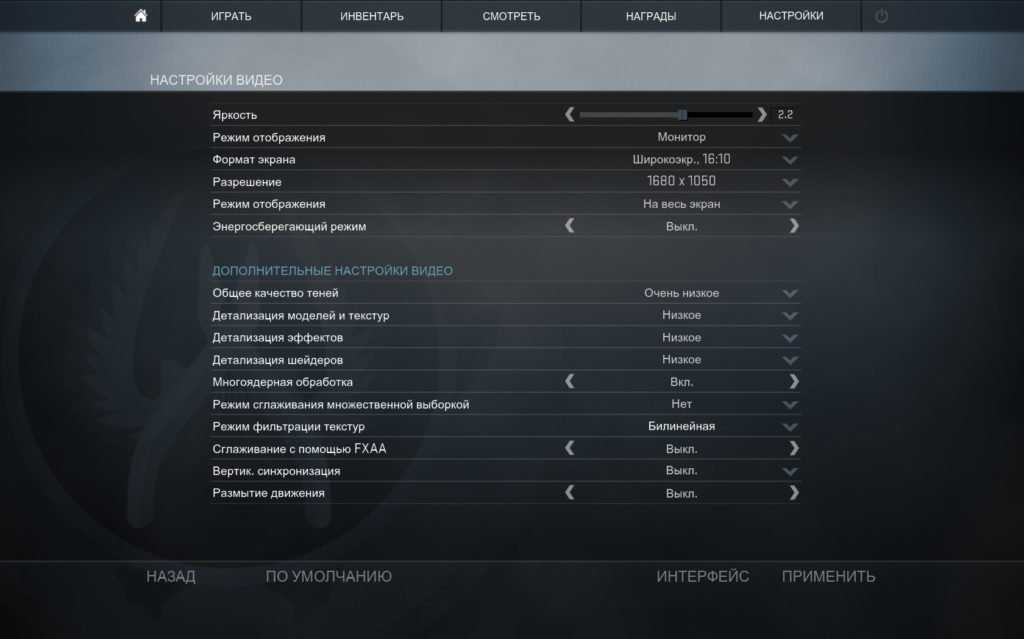 Как должны выглядеть основные настройки графики в игре? Мы рекомендуем выставлять всё на минимальное значение, это не только сильно увеличит Ваш FPS в игре, но и улучшит качество Вашей игры, так как Вы перестанете отвлекаться на мельчайшие детали графики. Мы часто замечали как многие игроки играют почти на самых высоких настройках графики и затем спрашивают: “Почему лагает КС:ГО?“. На таких настройках играют почти все профессиональные игроки CS:GO. Рекомендуемые нами настройки графики Вы можете увидеть на скриншоте ниже:
