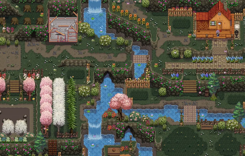 This is a great farm if you’re looking for a cozy play through and not entirely looking just for maximizing your profits and making as much money as possible. The best thing since the 1.5 update is that you can have this kind of farm for your day to day and then use the beach farm on Ginger Island to plant tons of ancient fruit and maximize profits more there.