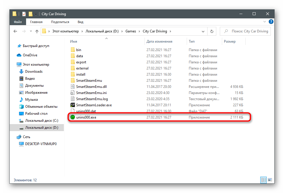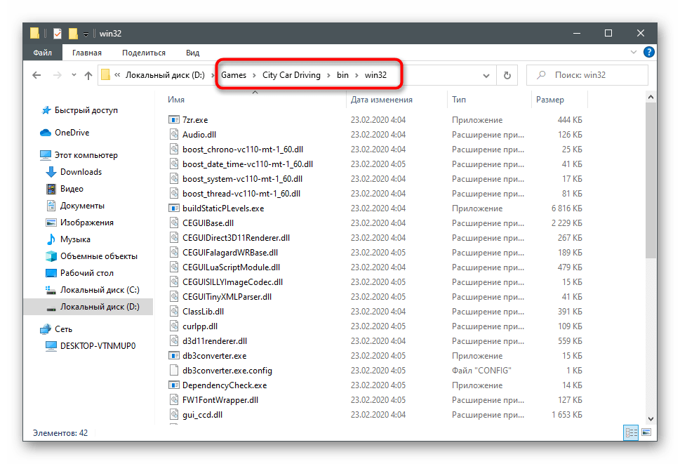 Если ничего из перечисленного выше не помогло и игра до сих пор не запускается, остается только переустановить ее, предварительно выполнив небольшой алгоритм действий. Перейдите по пути установки приложения через «Проводник» и убедитесь в том, что в нем отсутствуют русские символы (надпись «Локальный диск» при этом не учитывается). Наличие знаков кириллицы может сказаться на работоспособности City Car Driving и игра вовсе не запустится.