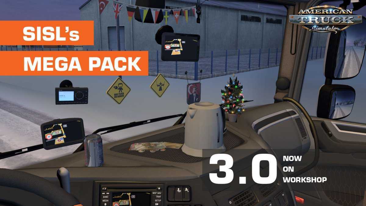 23 January 2019 SiSLs Mega Pack v3.0 (1.33.x) for ATS Download mod SiSLs Mega Pack v3.0 (1.33.x) for ATS | American Truck Simulator game. This mod contains over 400+ cabin accessory items suitable for your taste, bringing female and male co-drivers, bobbleheads, accessories for truck driver needs, snacks, electronic devices,…