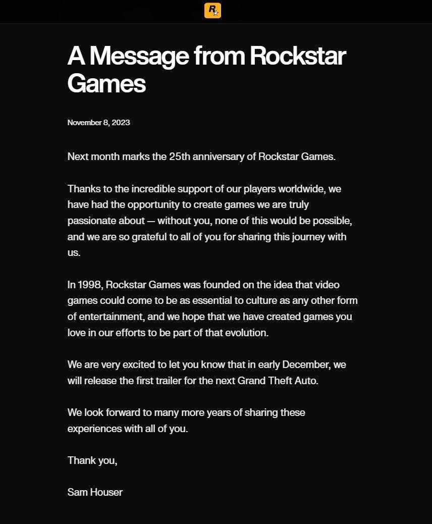 Согласно ему, анонсирующий трейлер GTA 6 действительно стоит ждать в начале декабря 2023 года.